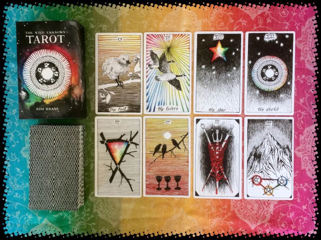 This tarot deck, although very different from the tarots based on the RWS deck, has some influences from it. I personally think the images are a bit dark, but they are still beautiful. It came with Josephine Ellershaw’s book and it’s good value for money.